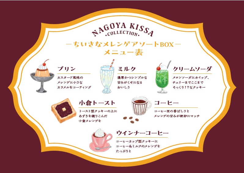 今回はメレンゲクッキーで名古屋喫茶メニューを再現した楽しいアソートBoxを開発。