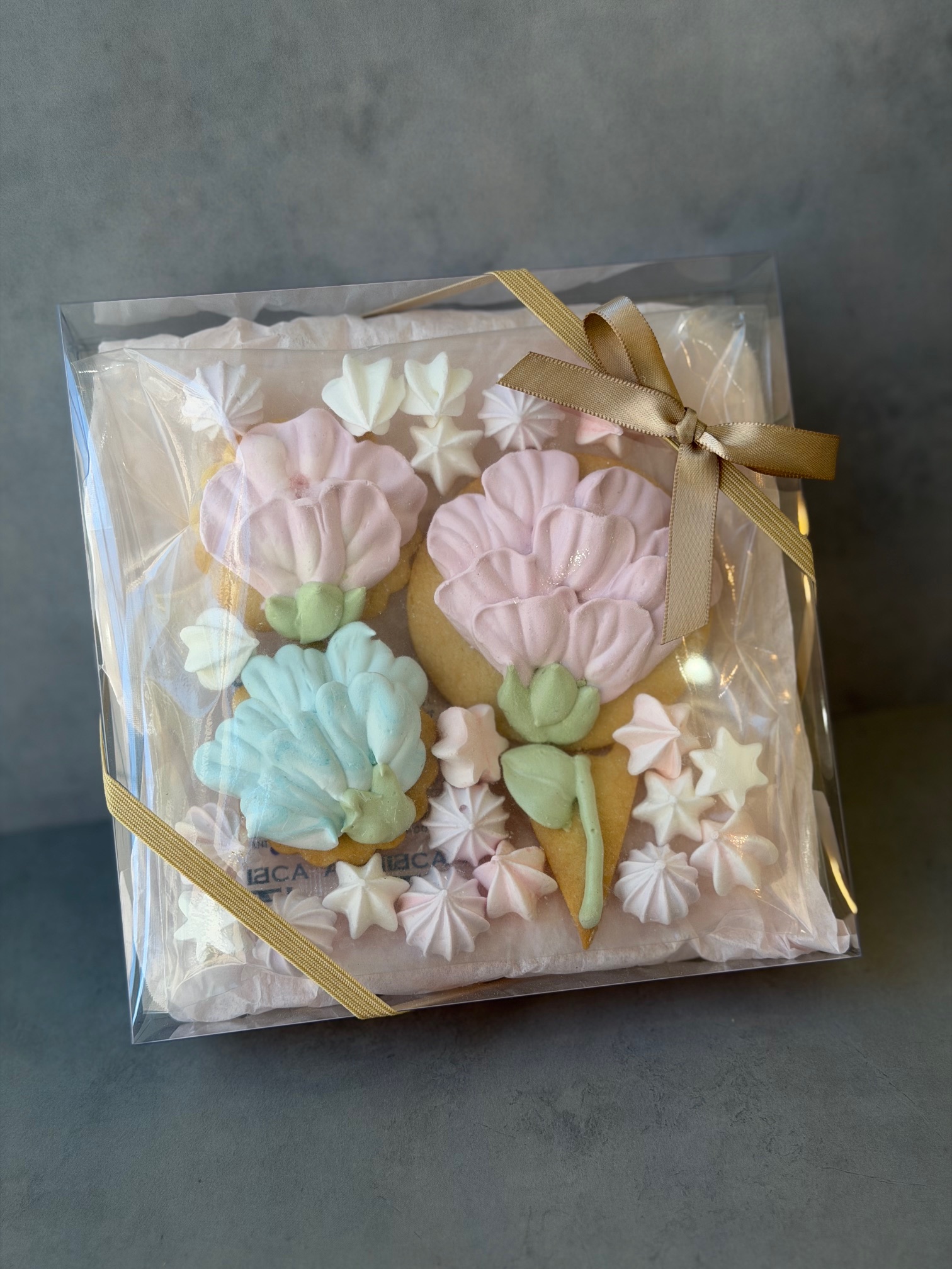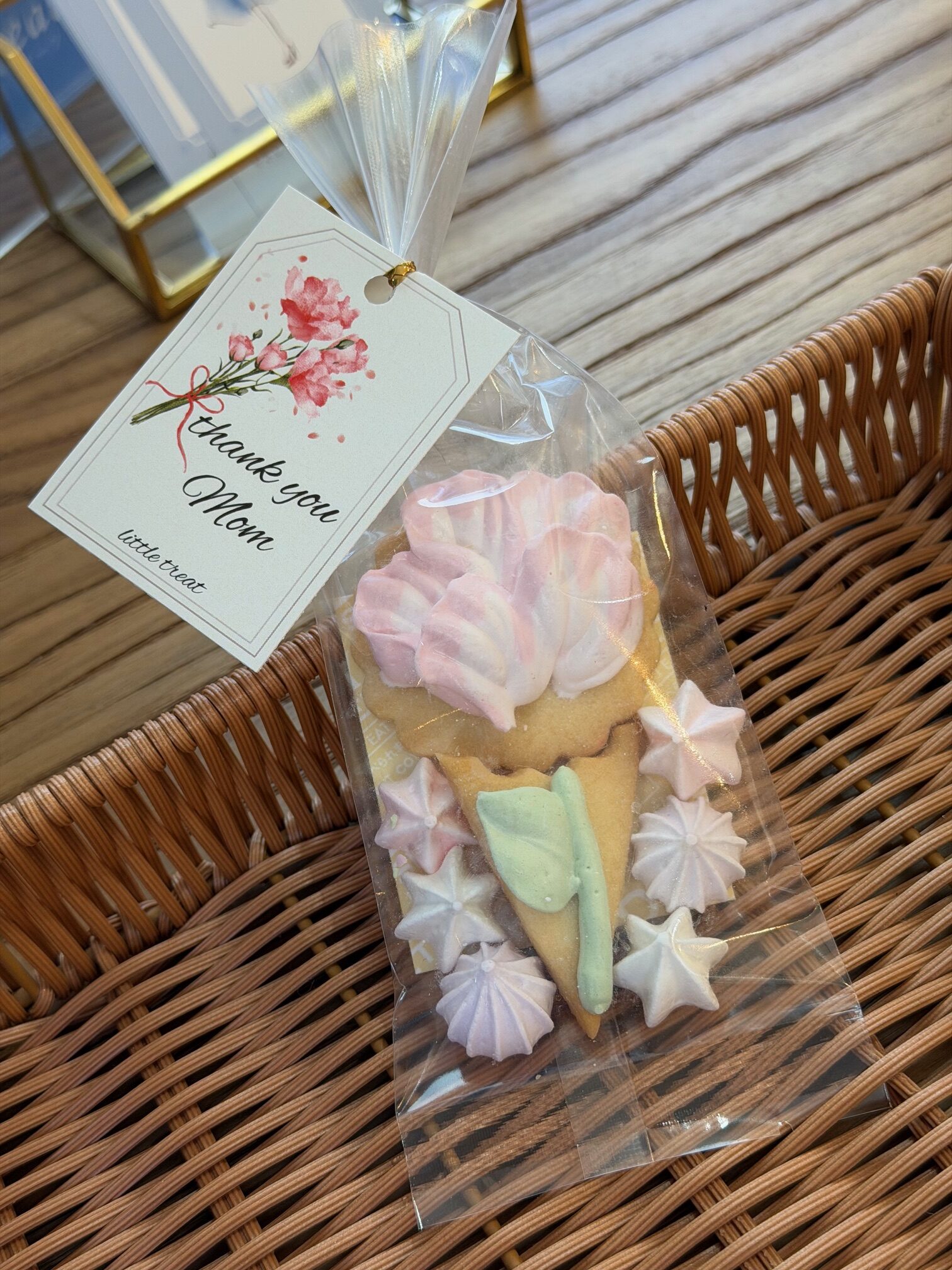 中にはカーネーションをはじめとする、春の花々に見立てた可愛いメレンゲクッキーがたくさん入っています♡